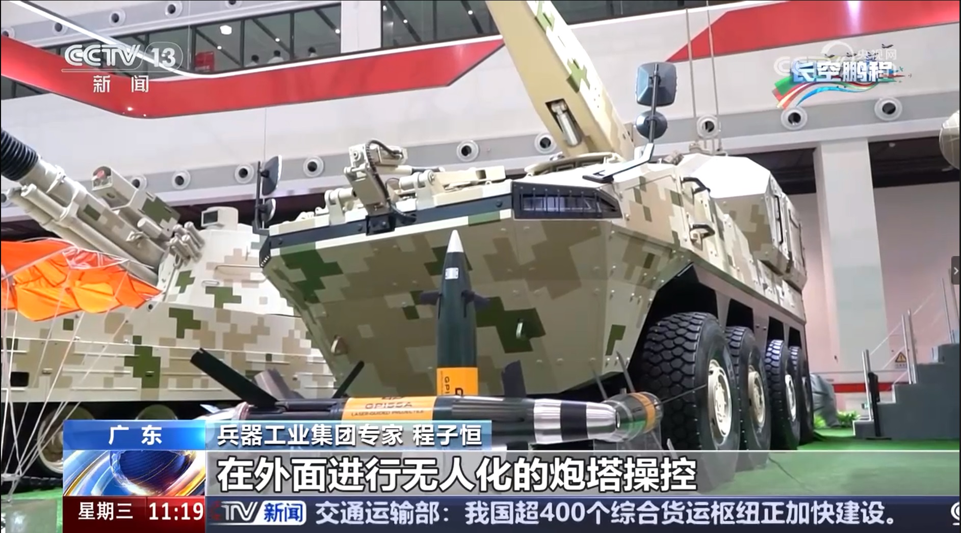 [正點(diǎn)財(cái)經(jīng)]第十五屆中國(guó)航展明日開(kāi)幕 記者打卡兵器館 多種陸域新型裝備精彩亮...